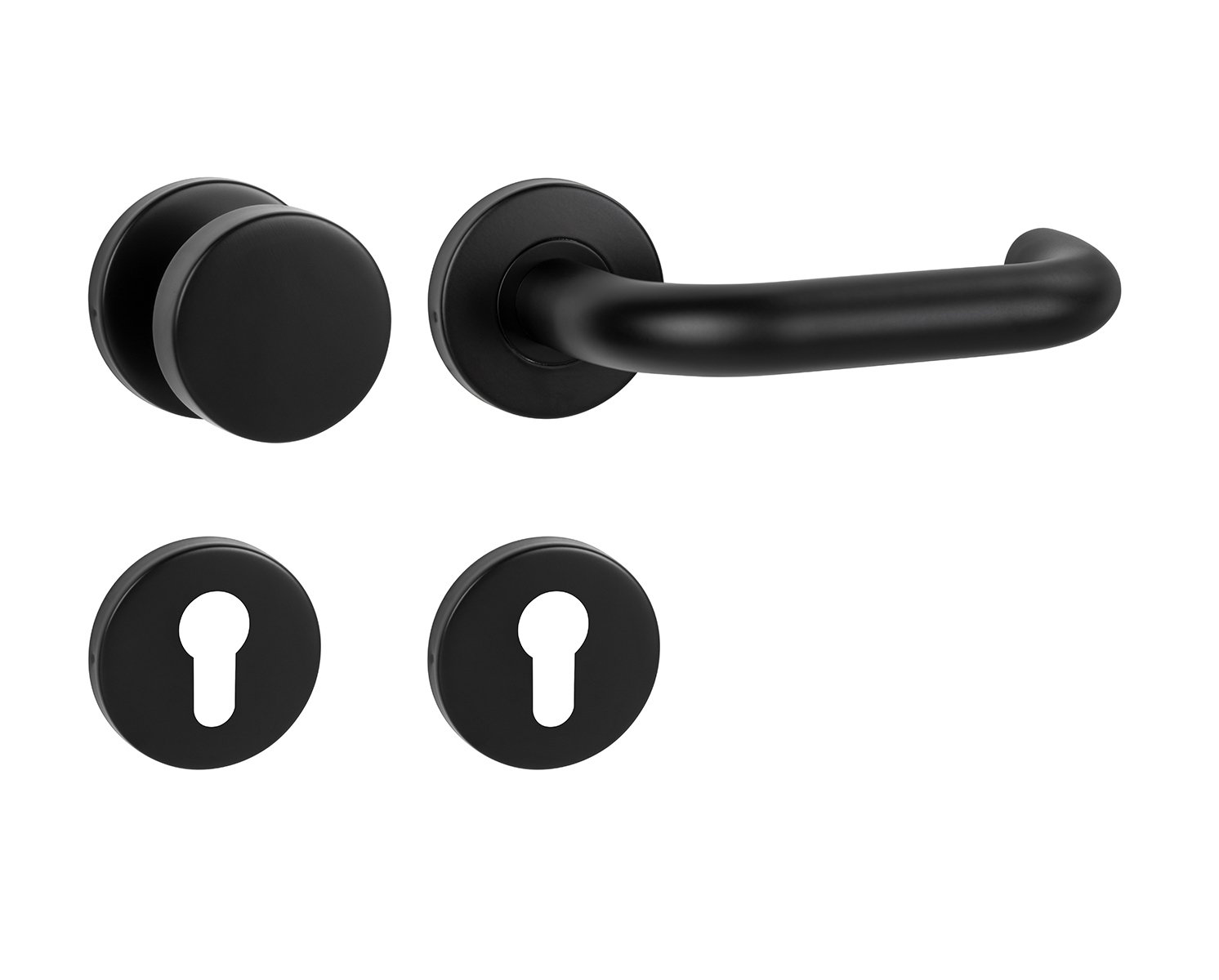 Rozetová klika na interiérové dveře s kulatou rozetou z kvalitní nerezavějící oceli, známé jako nerez a je povrchově upravena. Rozeta má průměr 54 mm a tloušťku 9 mm. Je barevně stabilní a odolná vůči opotřebení. Kování je testováno dle normy ČSN EN 1906: 2012 na 200 000 cyklů.