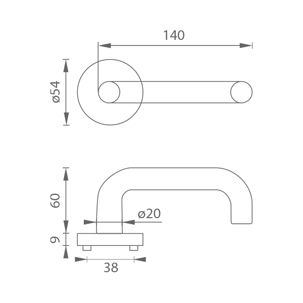 Rozetová klika na interiérové ​​dveře s kulatou rozetou z kvalitní nerezavějící oceli, známé jako nerez a je povrchově upravena. Rozeta má průměr 54 mm a tloušťku 9 mm. Je barevně stabilní a odolná vůči opotřebení. Kování je testováno dle normy ČSN EN 1906: 2012 na 200 000 cyklů.