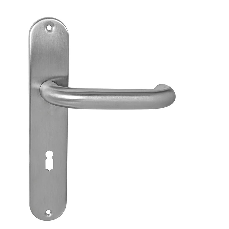 Štítová klika na interiérové ​​dveře s oválným štítem je vyrobena z vysoce kvalitní nerezavějící oceli, známé jako nerez a je povrchově upravena. Oválný štít má rozměry 42 mm x 225 mm.