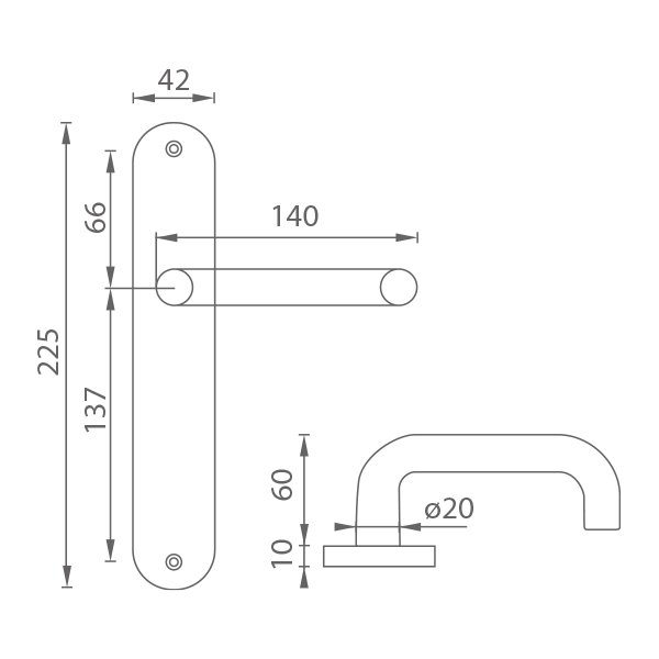 Štítová klika na interiérové ​​dveře s oválným štítem je vyrobena z vysoce kvalitní nerezavějící oceli, známé jako nerez a je povrchově upravena. Oválný štít má rozměry 42 mm x 225 mm.