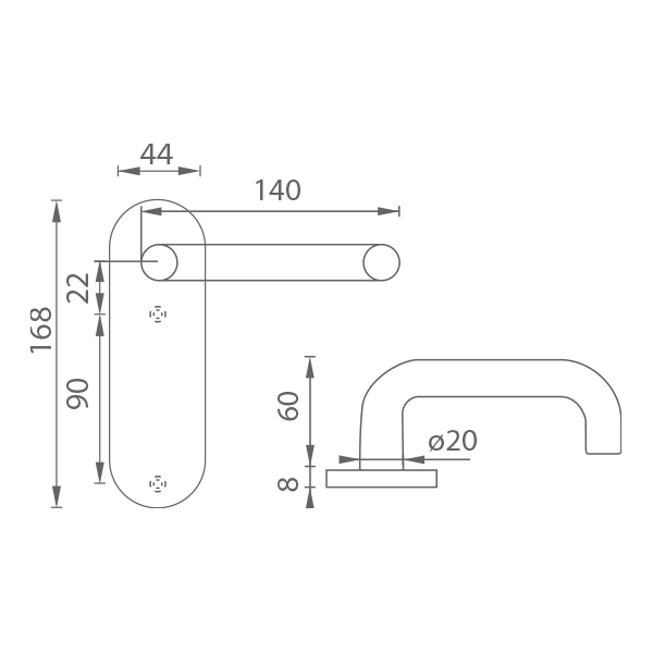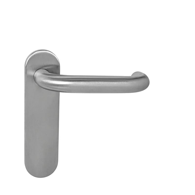 Štítová klika na interiérové dveře s krátkým oválným štítem je vyrobena z vysoce kvalitní nerezavějící oceli, známé jako nerez a je povrchově upravena. Krátký oválný štít má rozměry 44 mm x 168 mm.