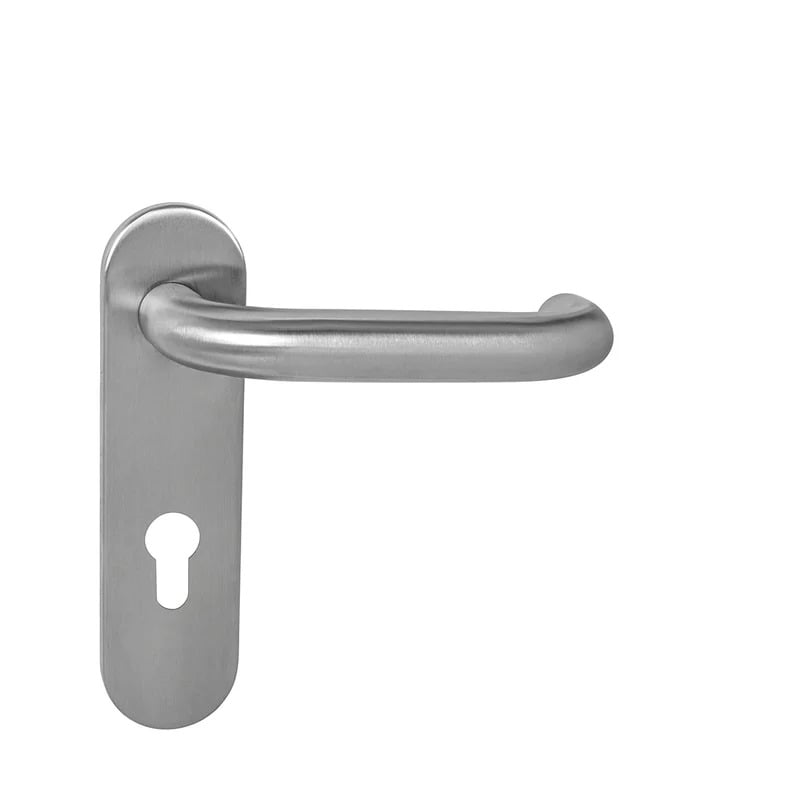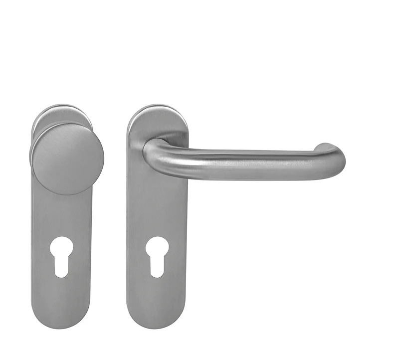 Štítová klika na interiérové ​​dveře s krátkým oválným štítem je vyrobena z vysoce kvalitní nerezavějící oceli, známé jako nerez a je povrchově upravena. Krátký oválný štít má rozměry 44 mm x 168 mm.