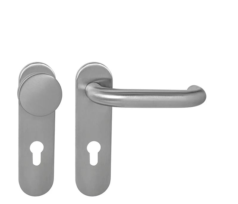 Štítová klika na interiérové dveře s krátkým oválným štítem je vyrobena z vysoce kvalitní nerezavějící oceli, známé jako nerez a je povrchově upravena. Krátký oválný štít má rozměry 44 mm x 168 mm.