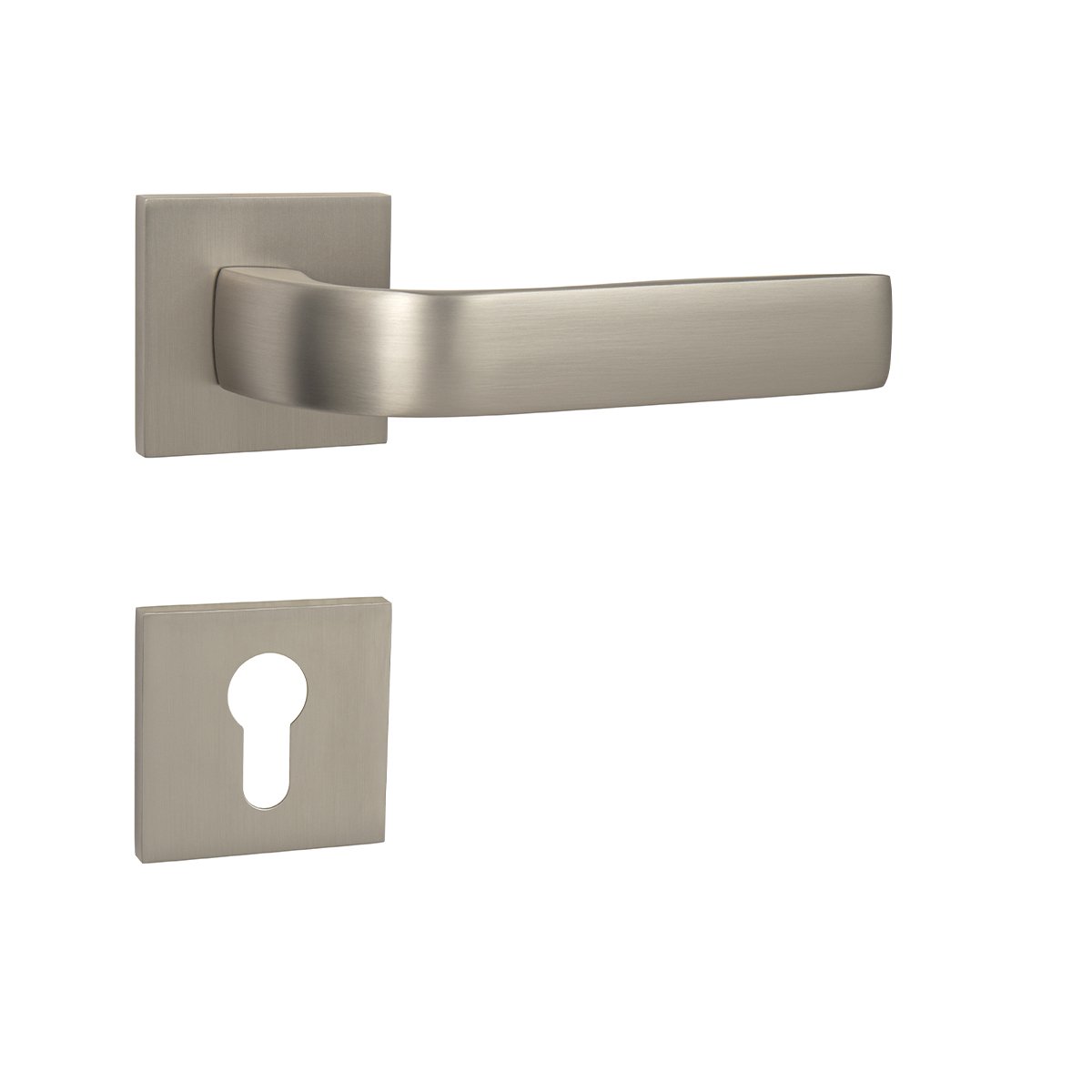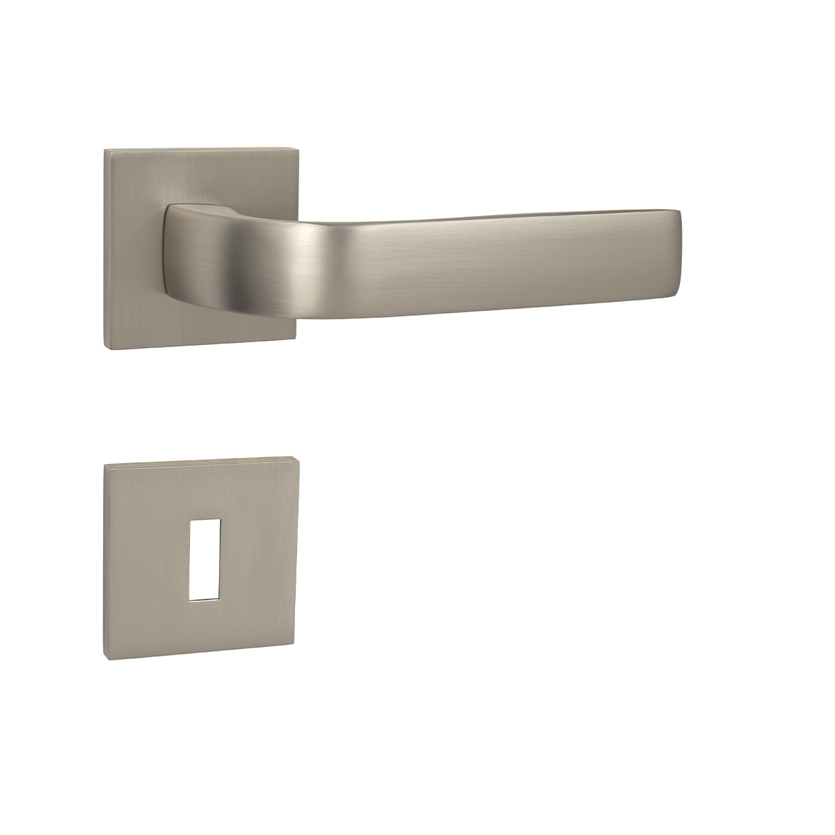 Rozetová klika na interiérové ​​dveře s hranatou rozetou je vyrobena odléváním z kvalitních slitin zinku a hliníku a je povrchově upravena. Klika je povrchově upravována galvanizací a vyznačuje se vysokou odolností proti oděru. Kování je testováno na 100 000 cyklů.