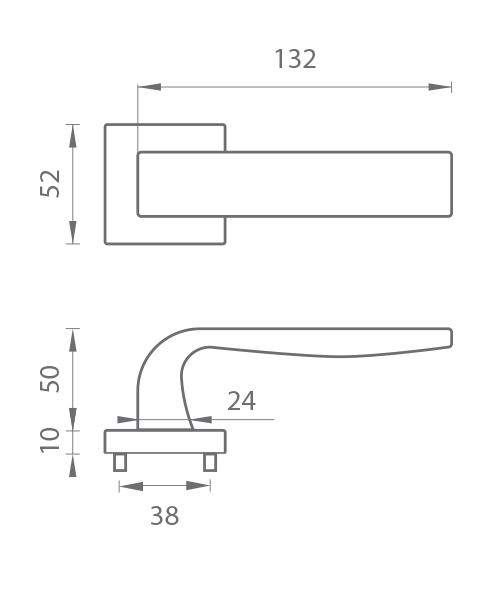 Rozetová klika na interiérové ​​dveře s hranatou rozetou je vyrobena odléváním z kvalitních slitin zinku a hliníku a je povrchově upravena. Rozeta má rozměry 52 mm x 52 mm a tloušťku 10 mm. Klika je povrchově upravována galvanizací a vyznačuje se vysokou odolností proti korozi. Kování je testováno na 100 000 cyklů.