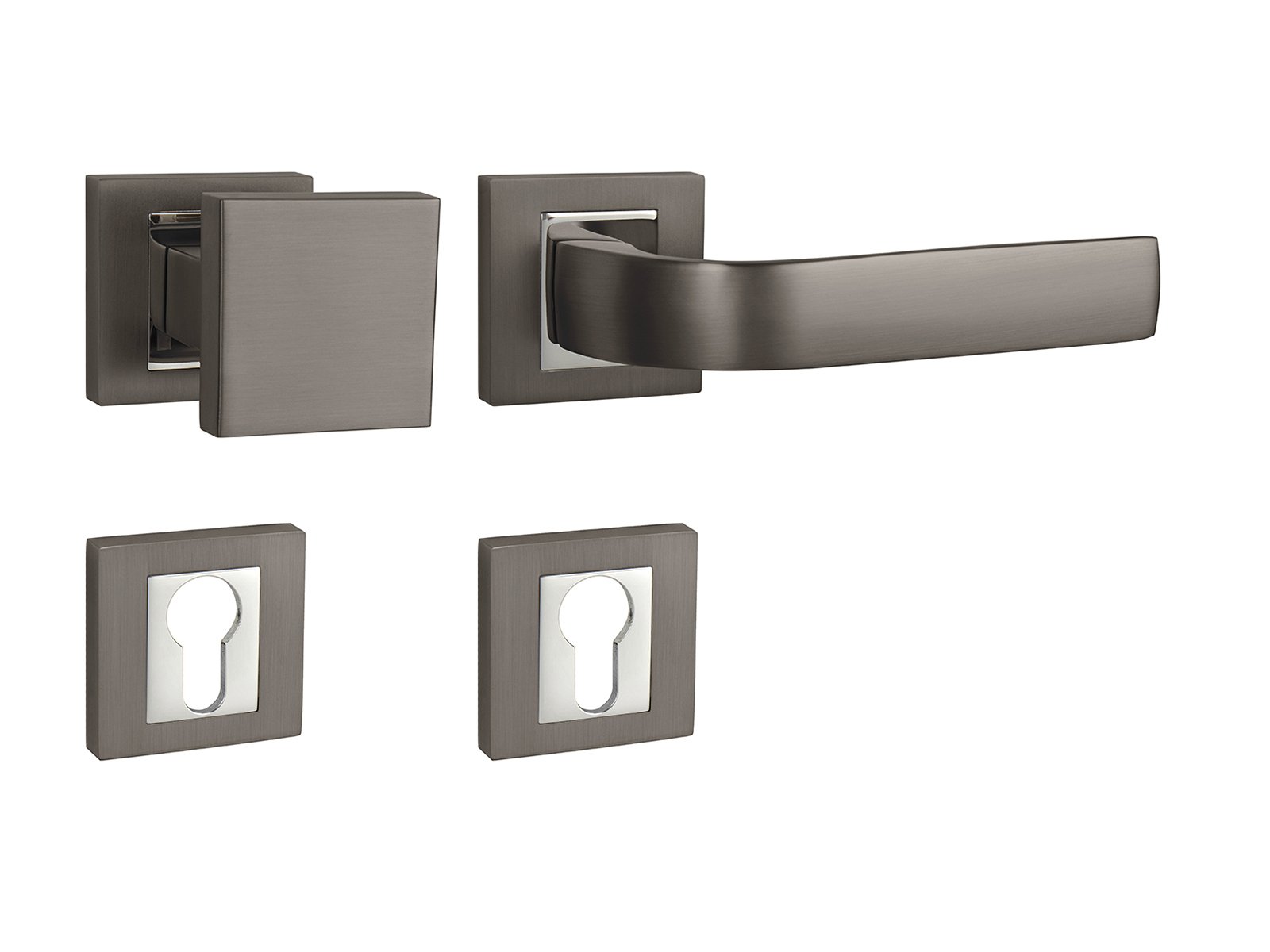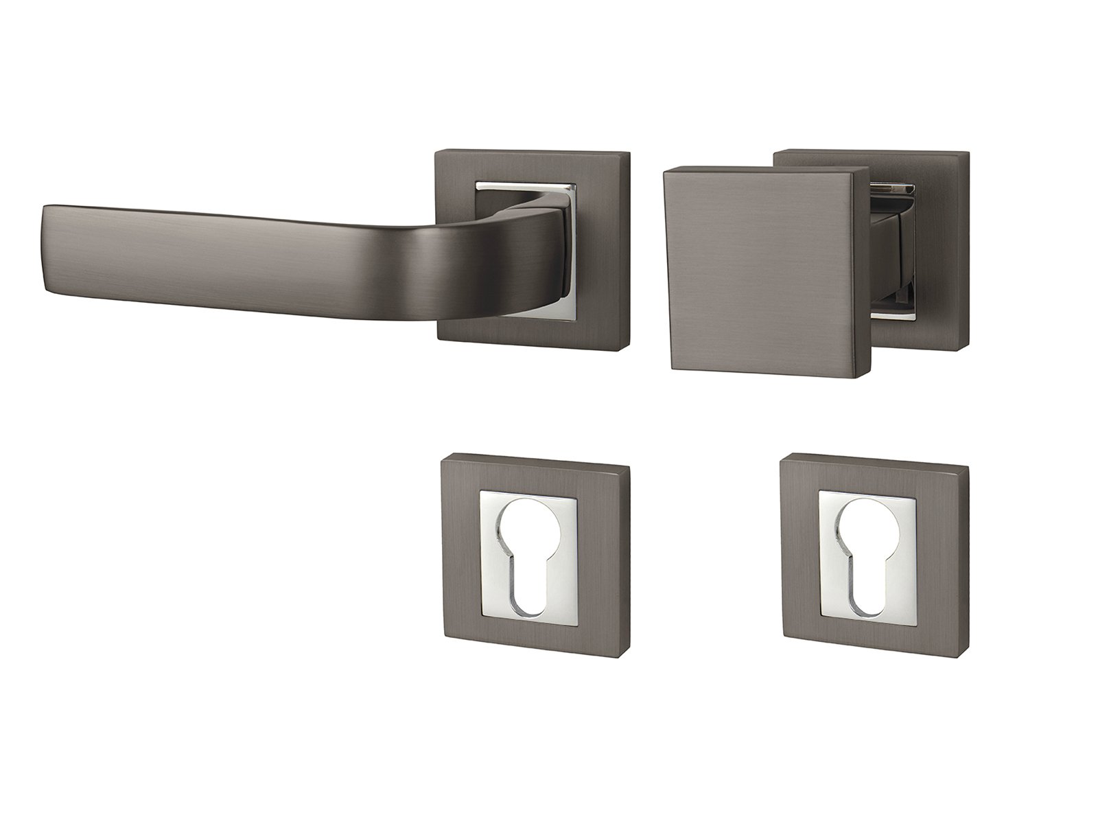 Rozetová klika na interiérové ​​dveře s hranatou rozetou je vyrobena odléváním z kvalitních slitin zinku a hliníku a je povrchově upravena. Rozeta má rozměry 52 mm x 52 mm a tloušťku 10 mm. Klika je povrchově upravována galvanizací a vyznačuje se vysokou odolností proti korozi. Kování je testováno na 100 000 cyklů.