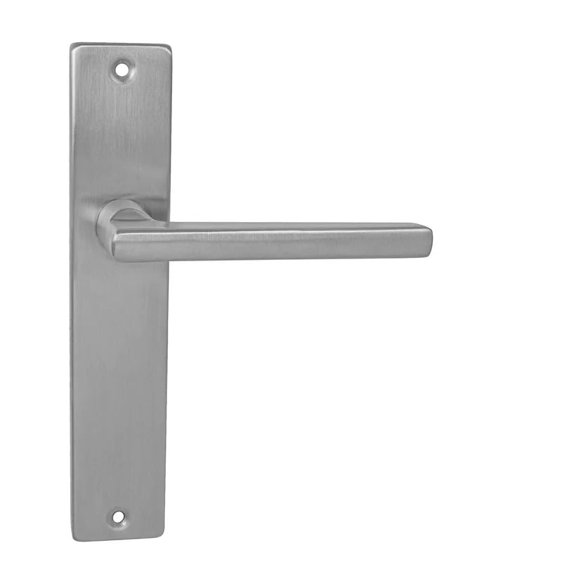 Štítová klika na interiérové dveře s hranatým štítem je vyrobena z vysoce kvalitní nerezavějící oceli, známé jako nerez a je povrchově upravena. Hranatý štít má rozměry 42 mm x 218 mm.