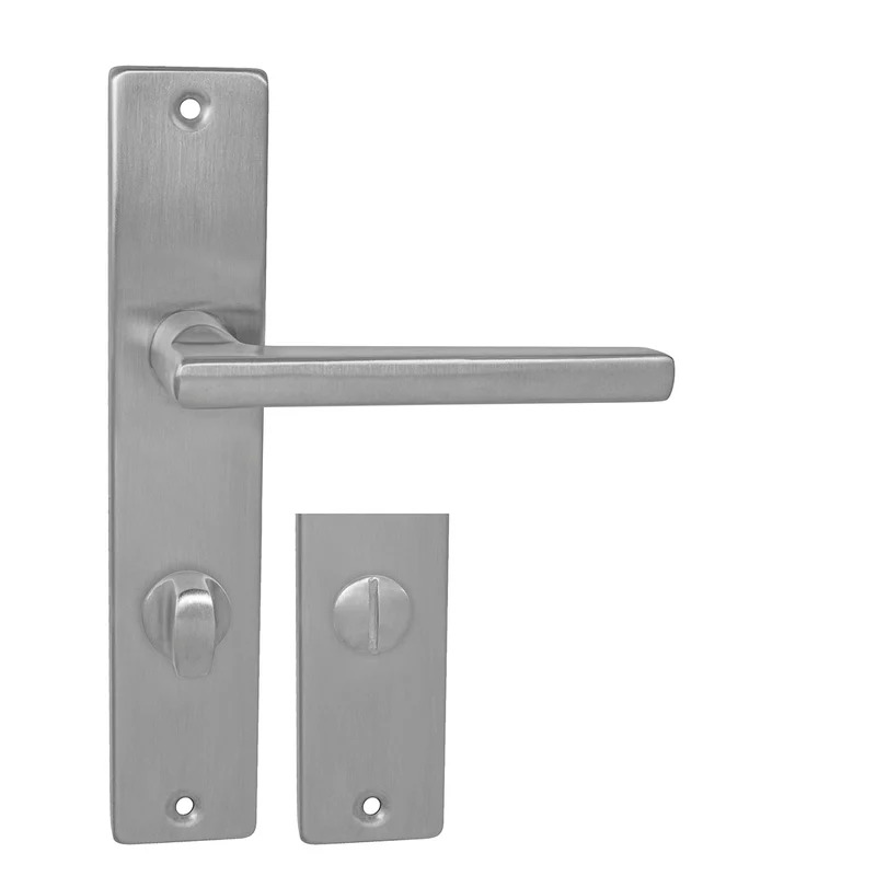 Štítová klika na interiérové ​​dveře s hranatým štítem je vyrobena z vysoce kvalitní nerezavějící oceli, známé jako nerez a je povrchově upravena. Hranatý štít má rozměry 42 mm x 218 mm.
