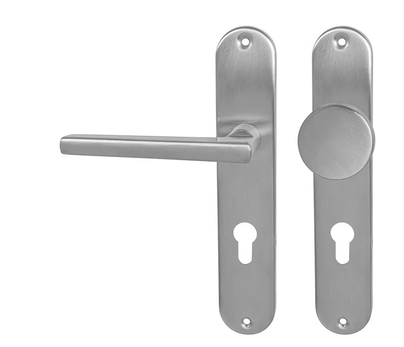 Štítová klika na interiérové ​​dveře s oválným štítem je vyrobena z vysoce kvalitní nerezavějící oceli, známé jako nerez a je povrchově upravena. Oválný štít má rozměry 42 mm x 225 mm.