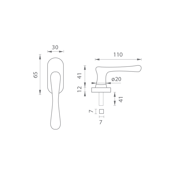 Rozeta má rozměry 30 mm x 65 mm a tloušťku 12 mm.