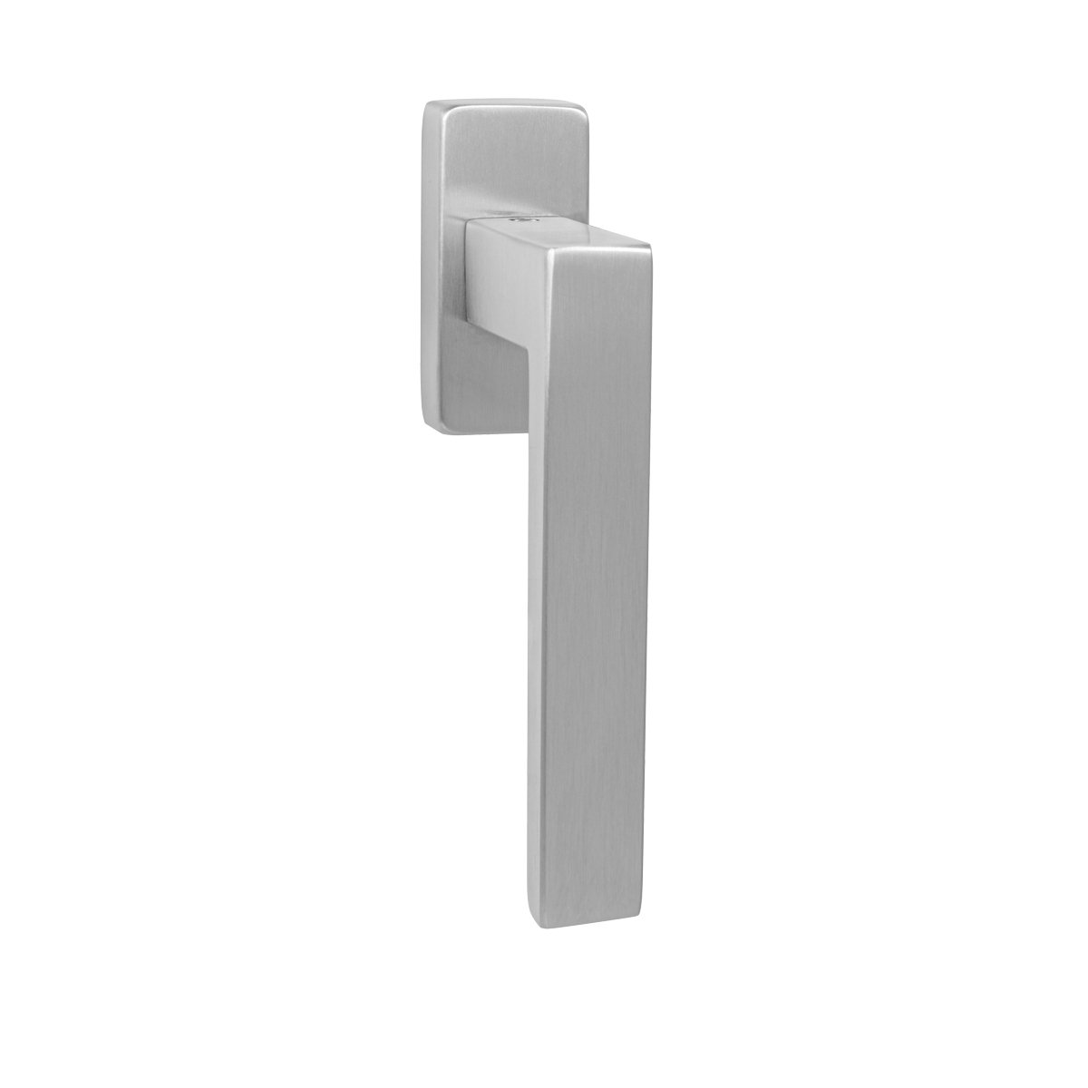 Klika na eurookno s hranatou rozetou je vyrobená z kvalitní nerezavějící oceli (nerez) a je povrchově upravená.