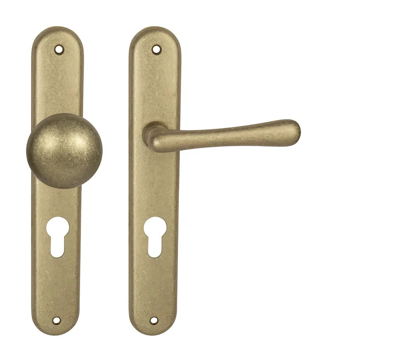 Štítová klika na interiérové ​​dveře s oválným štítem je vyrobena z materiálů vysoké kvality - mosaz a je povrchově upravena. Oválný štít má rozměry 37 mm x 247 mm.