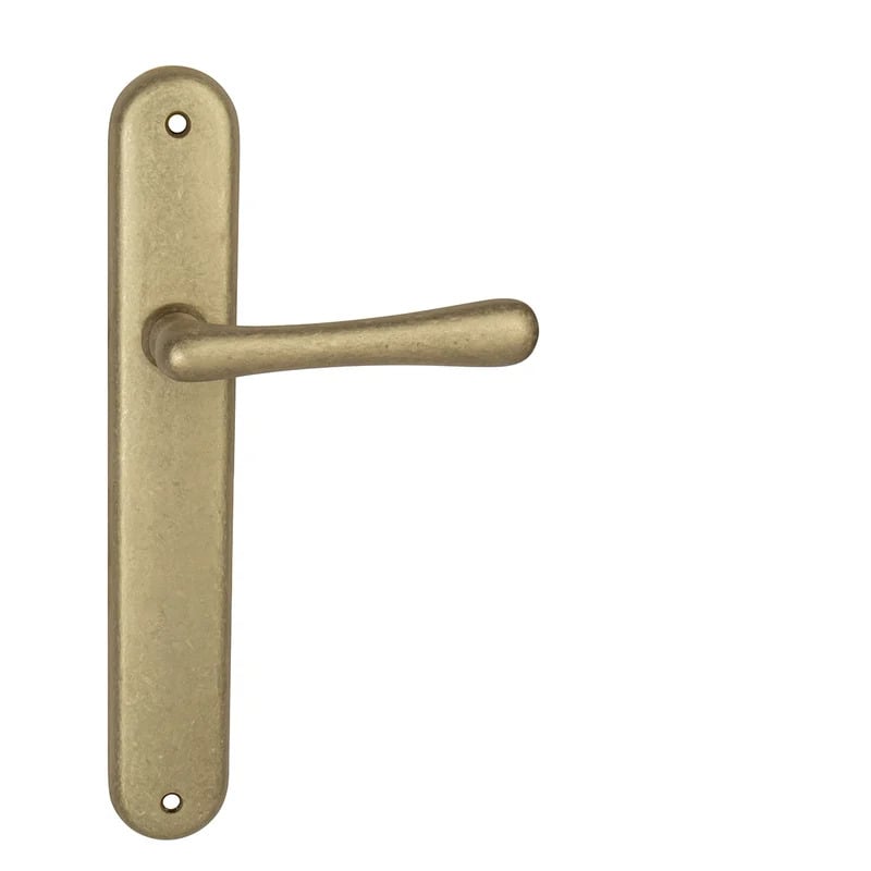 Štítová klika na interiérové ​​dveře s oválným štítem je vyrobena z materiálů vysoké kvality - mosaz a je povrchově upravena. Oválný štít má rozměry 37 mm x 247 mm.