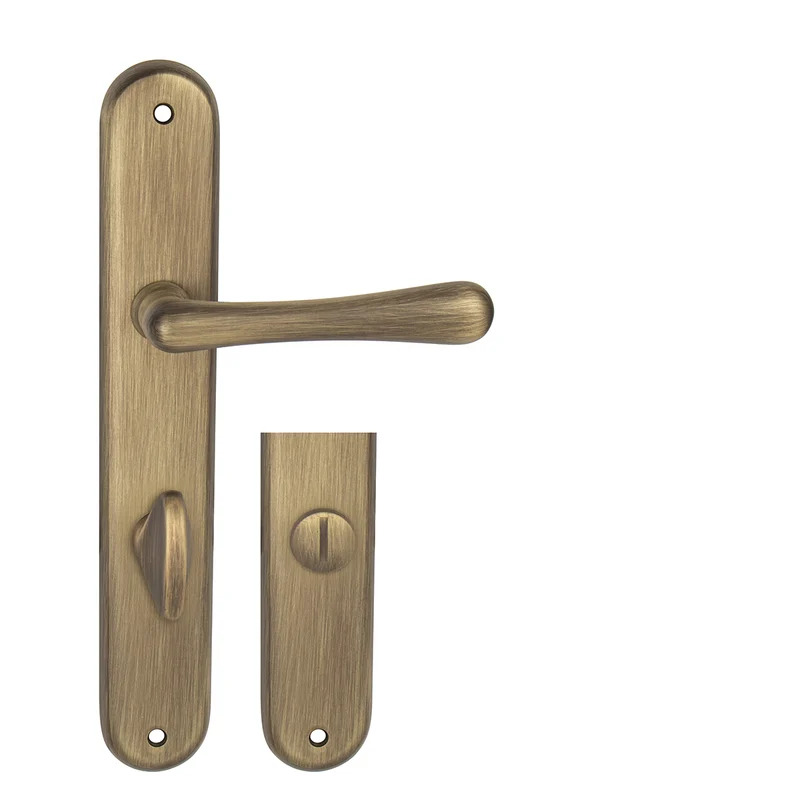 Štítová klika na interiérové ​​dveře s oválným štítem je vyrobena z materiálů vysoké kvality - mosaz a je povrchově upravena. Oválný štít má rozměry 37 mm x 247 mm.