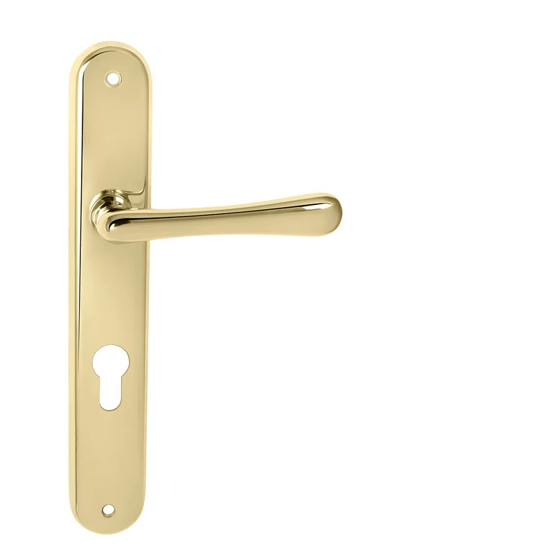 Štítová klika na interiérové dveře s oválným štítem je vyrobena z materiálů vysoké kvality - mosaz a je povrchově upravena. Oválný štít má rozměry 37 mm x 247 mm.