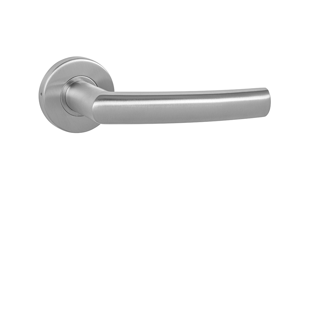 Rozetová klika na interiérové dveře s kulatou rozetou z vysoce kvalitní nerezavějící oceli, známé jako nerez a je povrchově upravena. Rozeta má průměr 54 mm a tloušťku 9 mm. Je barevně stabilní a odolná vůči opotřebení. Kování je testované podle normy ČSN EN 1906:2012 na 200 000 cyklů.