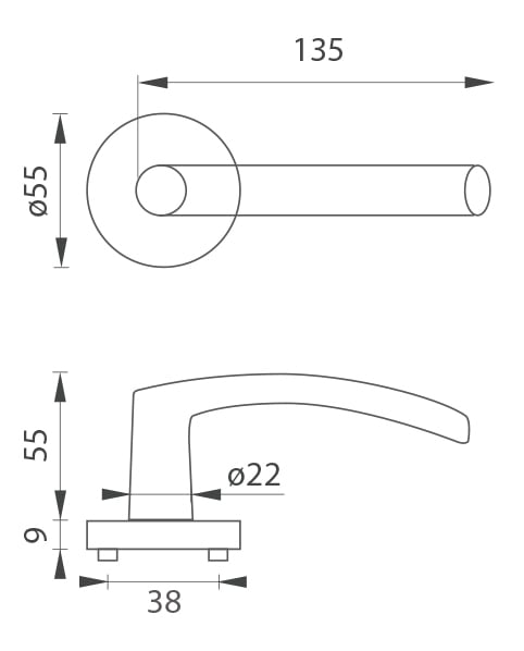 Rozetová klika na interiérové dveře s kulatou rozetou z vysoce kvalitní nerezavějící oceli, známé jako nerez a je povrchově upravena. Rozeta má průměr 54 mm a tloušťku 9 mm. Je barevně stabilní a odolná vůči opotřebení. Kování je testované podle normy ČSN EN 1906:2012 na 200 000 cyklů.