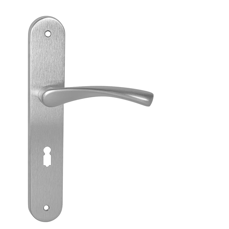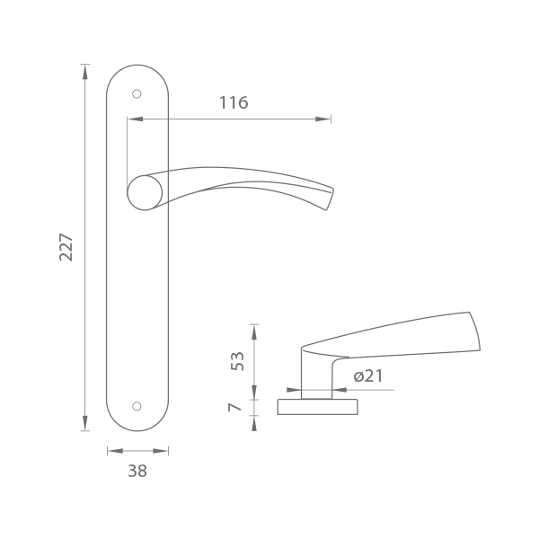 Štítová klika na interiérové ​​dveře s oválným štítem je vyrobena z materiálů vysoké kvality - zamak a je povrchově upravena. Oválný štít má rozměry 38 mm x 227 mm.