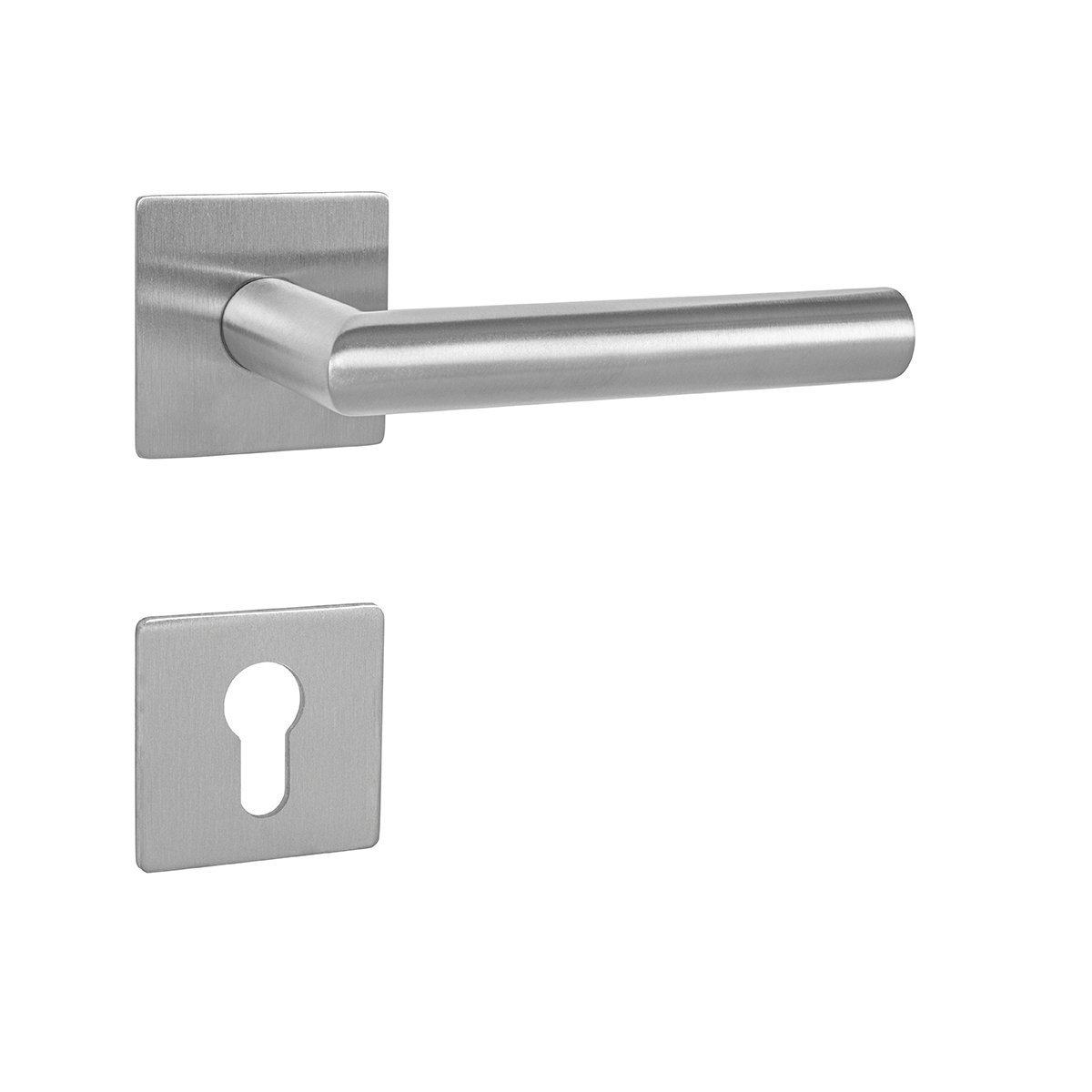 Rozetová klika na interiérové ​​dveře s magnetickou plochou hranatou rozetou je vyrobena z vysoce kvalitní nerezavějící oceli, známé jako nerez a je povrchově upravena. Rozeta má rozměry 55 mm x 55 mm a tloušťku jen 3 mm. Je barevně stabilní a odolná vůči opotřebení. Kování je testováno podle normy EN 1906 na 200 000 cyklů.