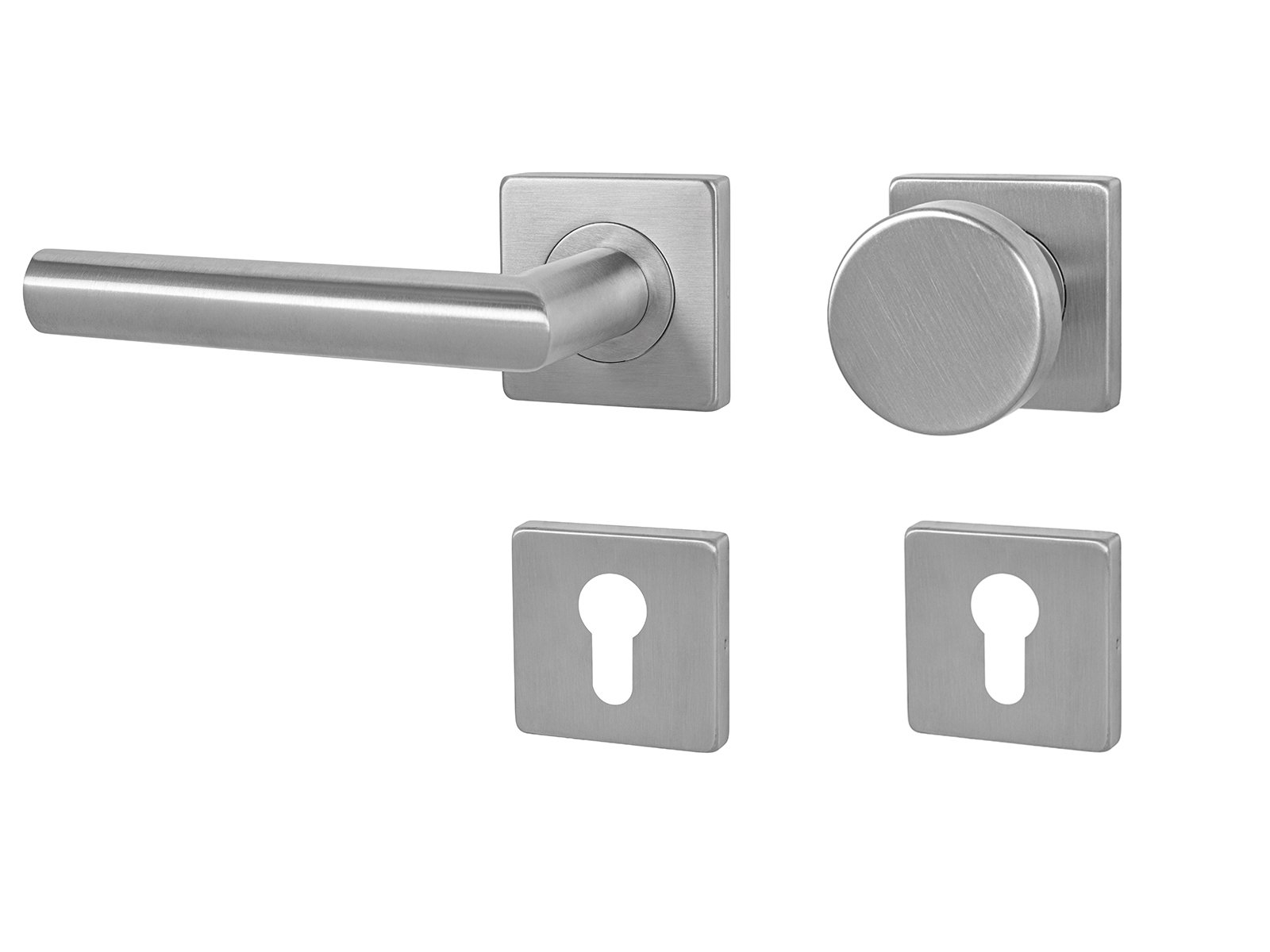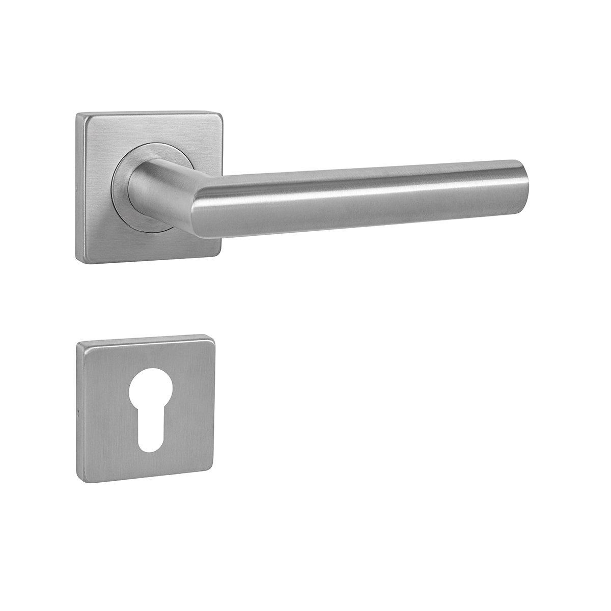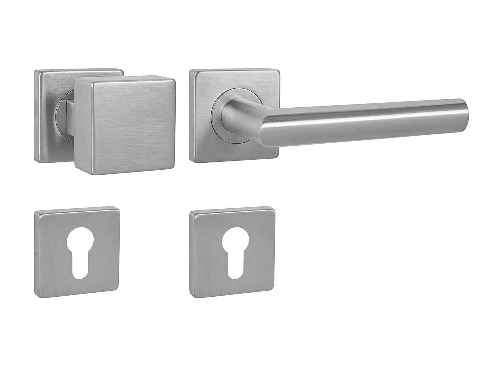 Rozetová klika na interiérové ​​dveře s hranatou rozetou je vyrobena z vysoce kvalitní nerezavějící oceli, známé jako nerez a je povrchově upravena. Rozeta má rozměry 54 mm x 54 mm a tloušťku 9 mm. Je barevně stabilní a odolná vůči opotřebení. Kování je testováno dle normy ČSN EN 1906: 2012 na 200 000 cyklů.