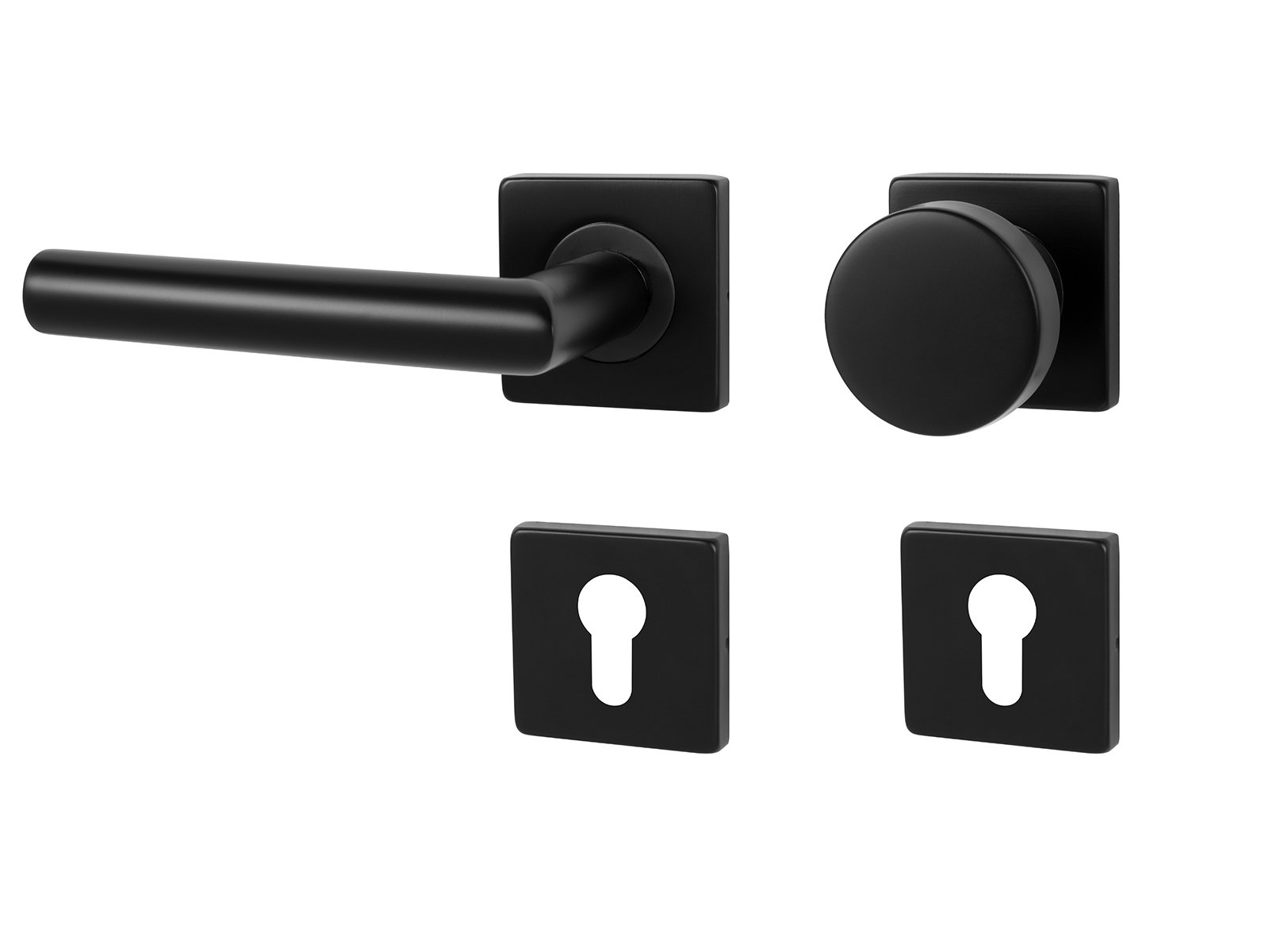 Rozetová klika na interiérové dveře s hranatou rozetou je vyrobena z vysoce kvalitní nerezavějící oceli, známé jako nerez a je povrchově upravena. Rozeta má rozměry 54 mm x 54 mm a tloušťku 9 mm. Je barevně stabilní a odolná vůči opotřebení. Kování je testováno dle normy ČSN EN 1906: 2012 na 200 000 cyklů.