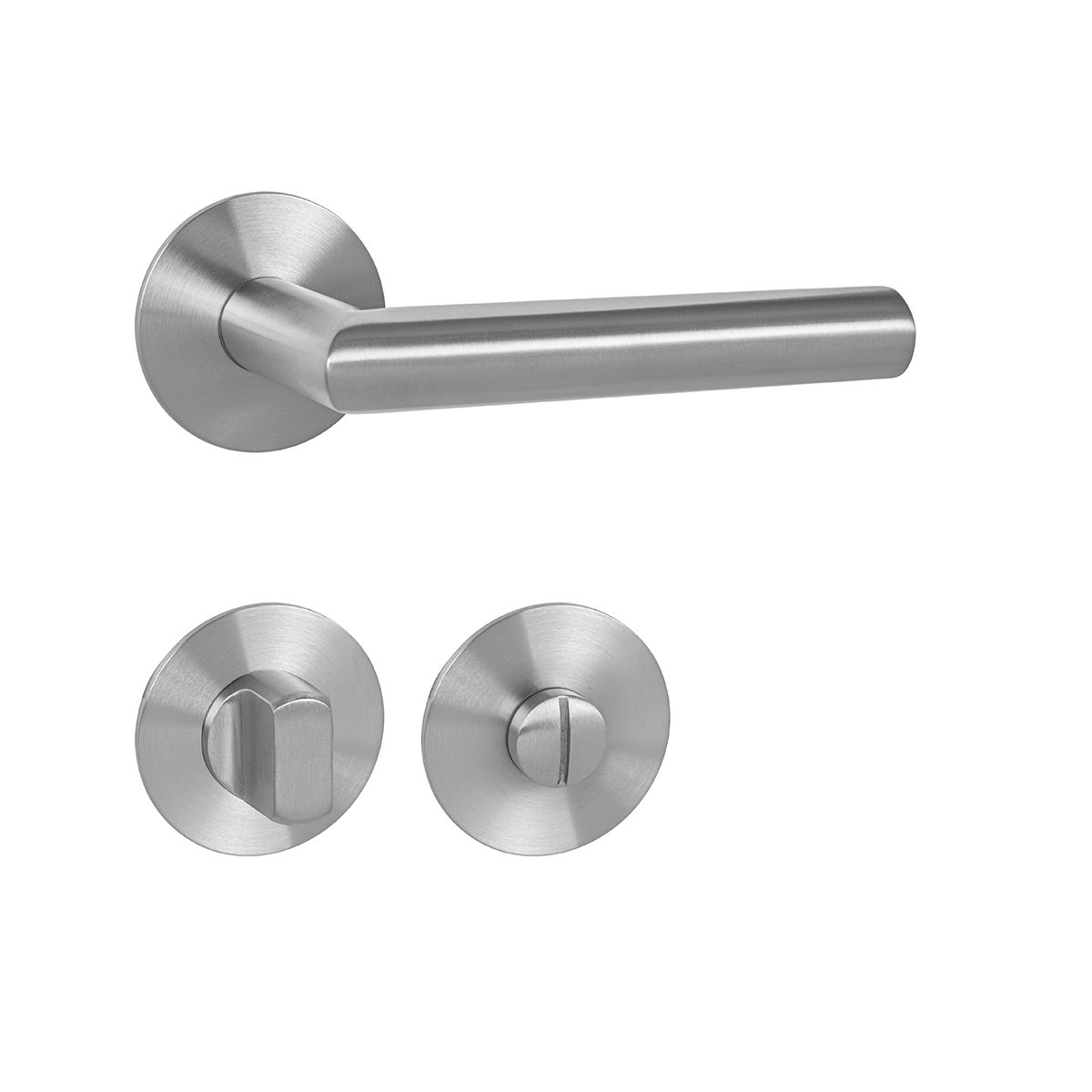 Rozetová klika na interiérové ​​dveře s magnetickou plochou kulatou rozetou z kvalitní nerezavějící oceli, známé jako nerez a je povrchově upravena. Rozeta má průměr 55 mm a tloušťku jen 3 mm. Je barevně stabilní a odolná vůči opotřebení. Kování je testováno podle normy EN 1906 na 200 000 cyklů.