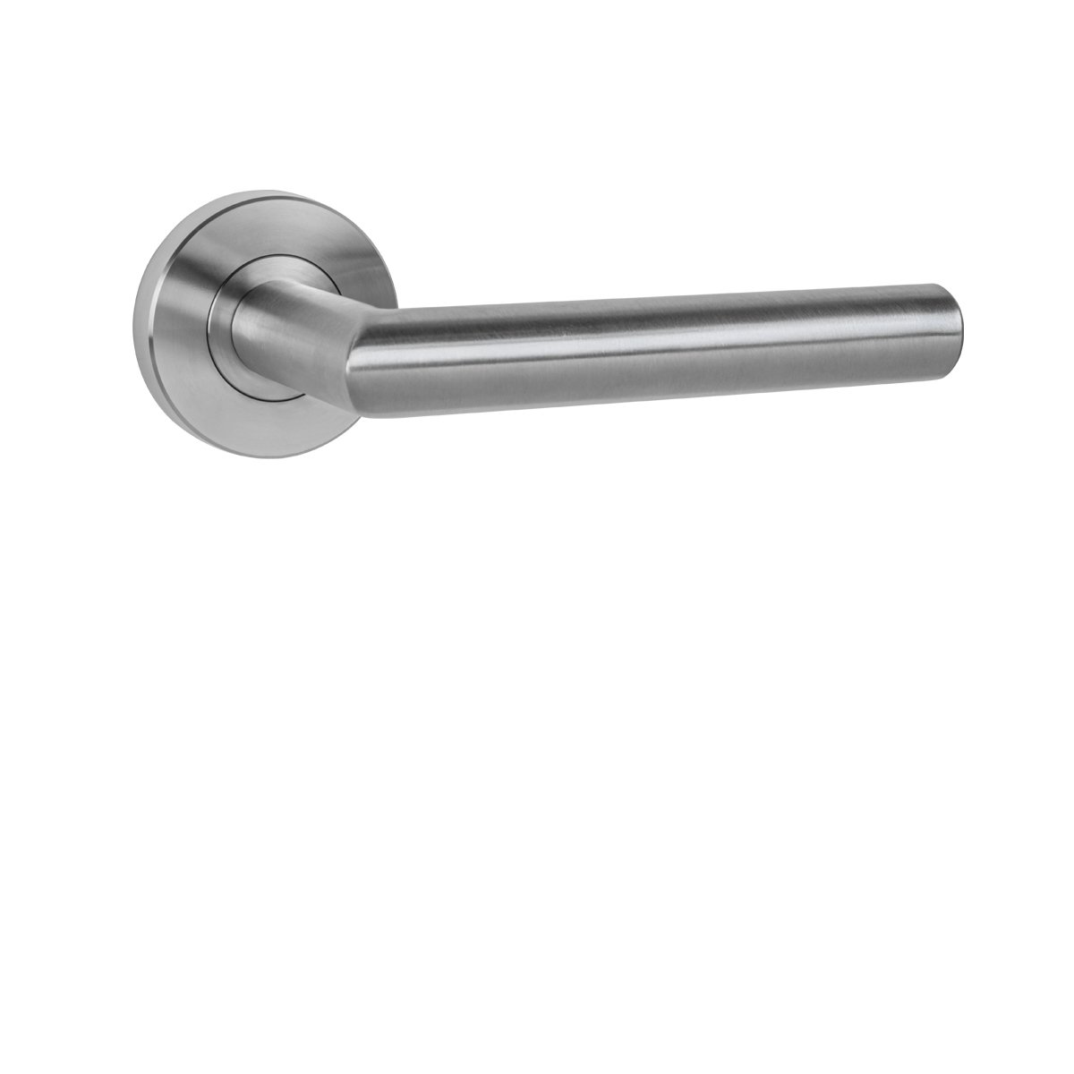 Rozetová klika na interiérové ​​dveře s kulatou šroubovací rozetou představuje kombinaci funkčnosti a elegance pro prostředí s vysokou zátěží. Je vyrobena z vysoce kvalitní nerezavějící oceli, známé jako nerez a je povrchově upravená. Povrch je nanesen vysoce kvalitní technologií pokovování PVD, na kterou se vztahuje prodloužená 10letá záruka. Krycí rozety jsou upevněny vnitřním závitem bez viditelných spojů, který zaručuje extrémně pevný spoj a hladké přilnutí k povrchu dveří. Ergonomický úchop se seříznutou hranou poskytuje pohodlí při každém doteku. Klika je díky své robustní konstrukci obzvlášť vhodná pro prostředí s vysokou frekvencí pohybu osob, jako jsou kanceláře, veřejné budovy, nemocnice, čerpací stanice apod.