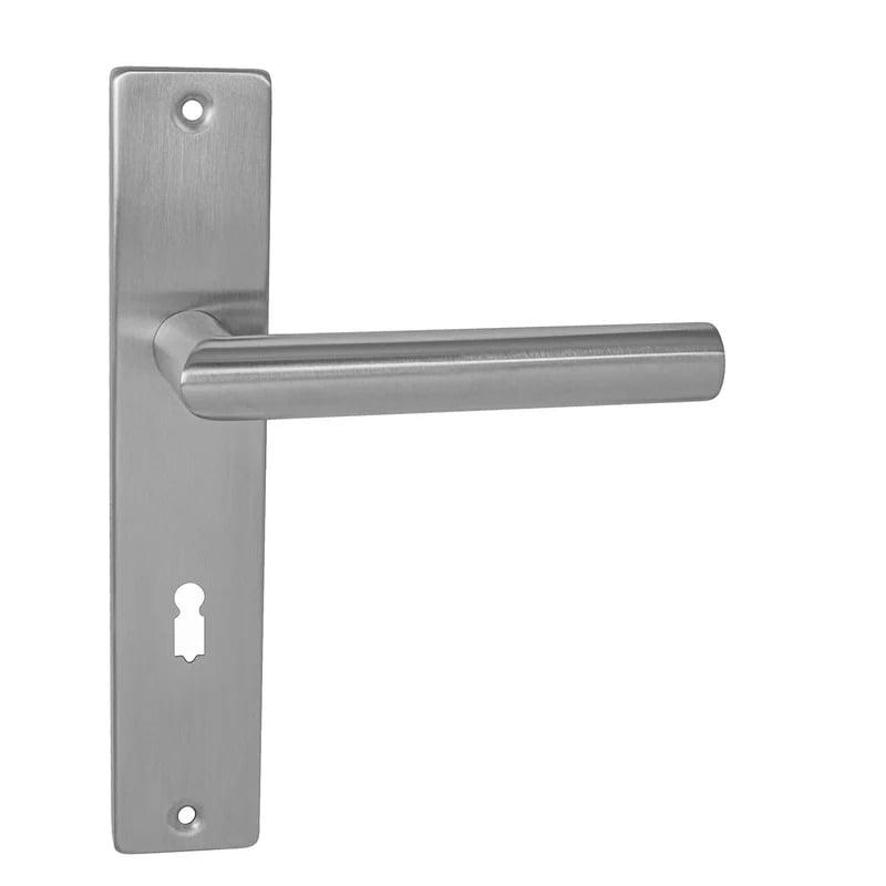 Štítová klika na interiérové ​​dveře s hranatým štítem je vyrobena z vysoce kvalitní nerezavějící oceli, známé jako nerez a je povrchově upravena. Hranatý štít má rozměry 42 mm x 218 mm.