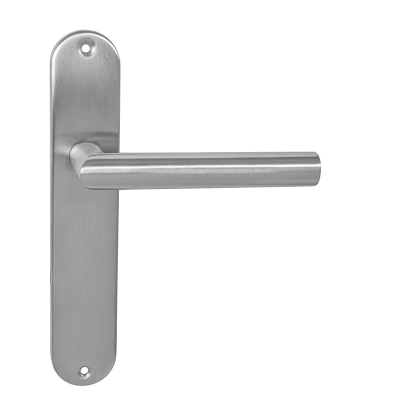Štítová klika na interiérové ​​dveře s oválným štítem je vyrobena z vysoce kvalitní nerezavějící oceli, známé jako nerez a je povrchově upravena. Oválný štít má rozměry 42 mm x 225 mm.