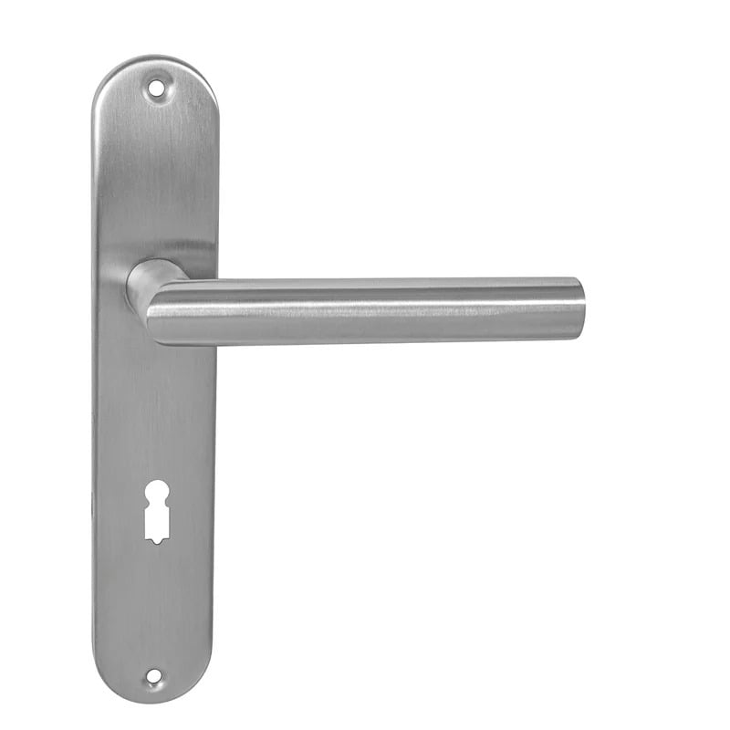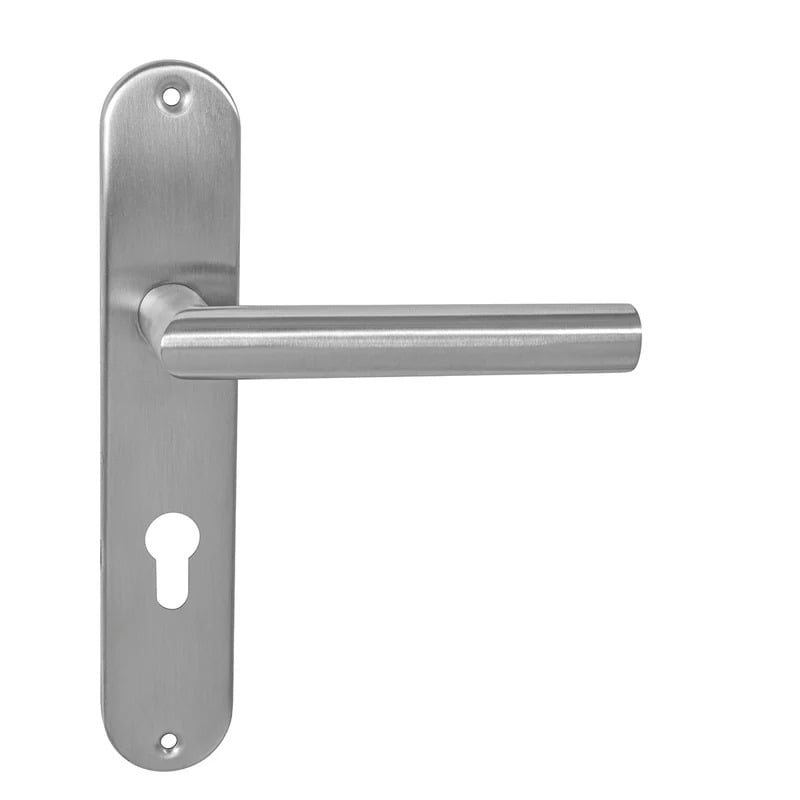 Štítová klika na interiérové ​​dveře s oválným štítem je vyrobena z vysoce kvalitní nerezavějící oceli, známé jako nerez a je povrchově upravena. Oválný štít má rozměry 42 mm x 225 mm.