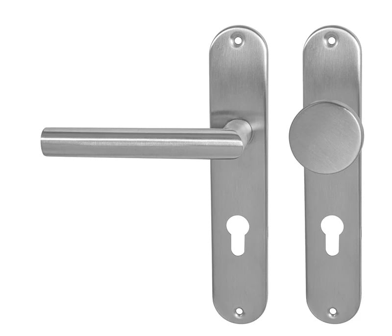 Štítová klika na interiérové ​​dveře s oválným štítem je vyrobena z vysoce kvalitní nerezavějící oceli, známé jako nerez a je povrchově upravena. Oválný štít má rozměry 42 mm x 225 mm.