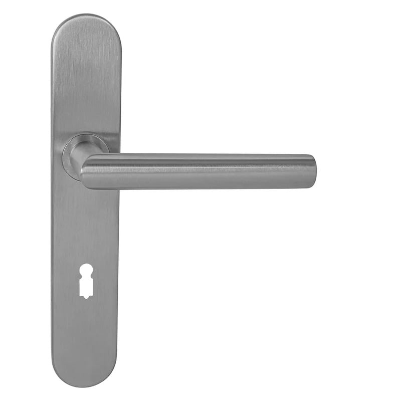 Štítová klika na interiérové ​​dveře s dlouhým oválným štítem je vyrobena z vysoce kvalitní nerezavějící oceli, známé jako nerez a je povrchově upravena. Dlouhý oválný štít má rozměry 42 mm x 236 mm.