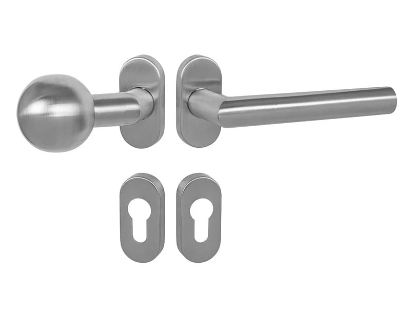 Rozetová klika s oválnou úzkou rozetou pro dveře s úzkým profilem (např.: zahradní branky a branky plotů) je vyrobena z vysoce kvalitní nerezavějící oceli, známé jako nerez a je povrchově upravena. Mechanismus kliky obsahuje vratnou pružinu.