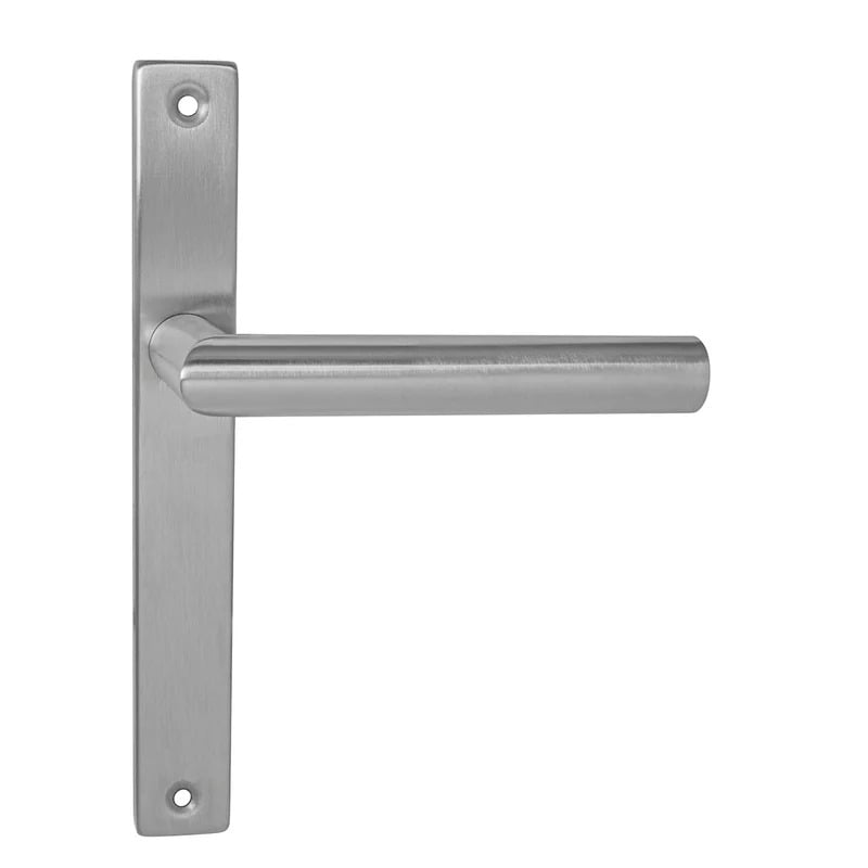 Štítová klika na interiérové ​​dveře s úzkým hranatým štítem je vyrobena z vysoce kvalitní nerezavějící oceli, známé jako nerez a je povrchově upravena. Úzký hranatý štít má rozměry 28 mm x 218 mm.