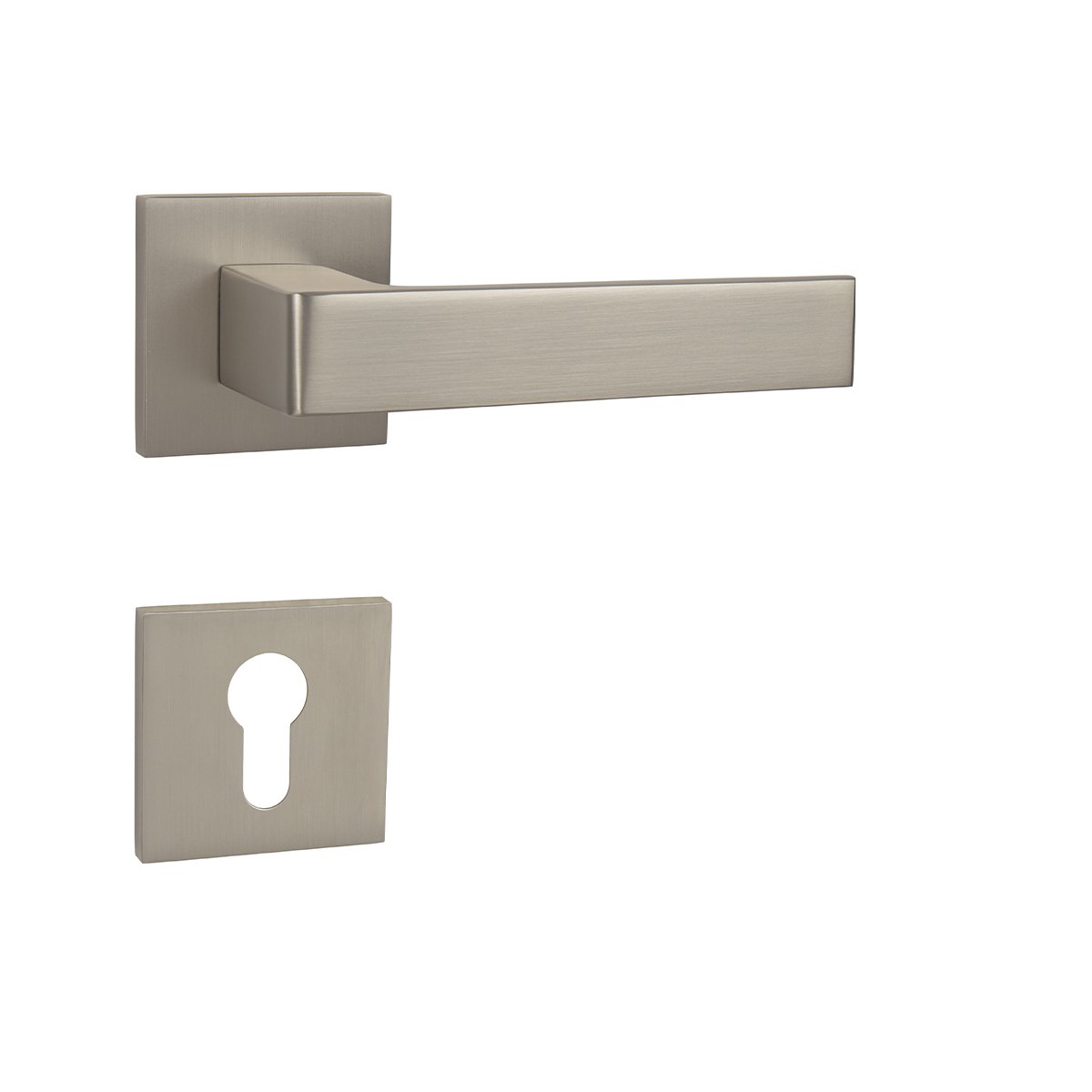 Rozetová klika na interiérové ​​dveře s hranatou rozetou je vyrobena odléváním z kvalitních slitin zinku a hliníku a je povrchově upravena. Klika je povrchově upravována galvanizací a vyznačuje se vysokou odolností proti oděru. Kování je testováno na 100 000 cyklů.