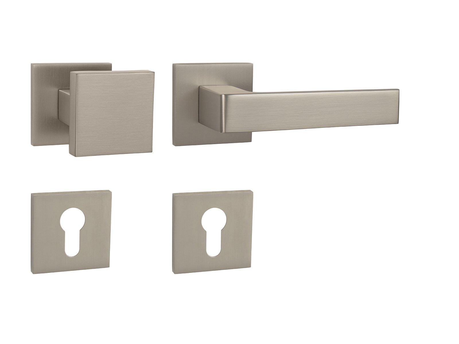 Rozetová klika na interiérové ​​dveře s hranatou rozetou je vyrobena odléváním z kvalitních slitin zinku a hliníku a je povrchově upravena. Klika je povrchově upravována galvanizací a vyznačuje se vysokou odolností proti oděru. Kování je testováno na 100 000 cyklů.