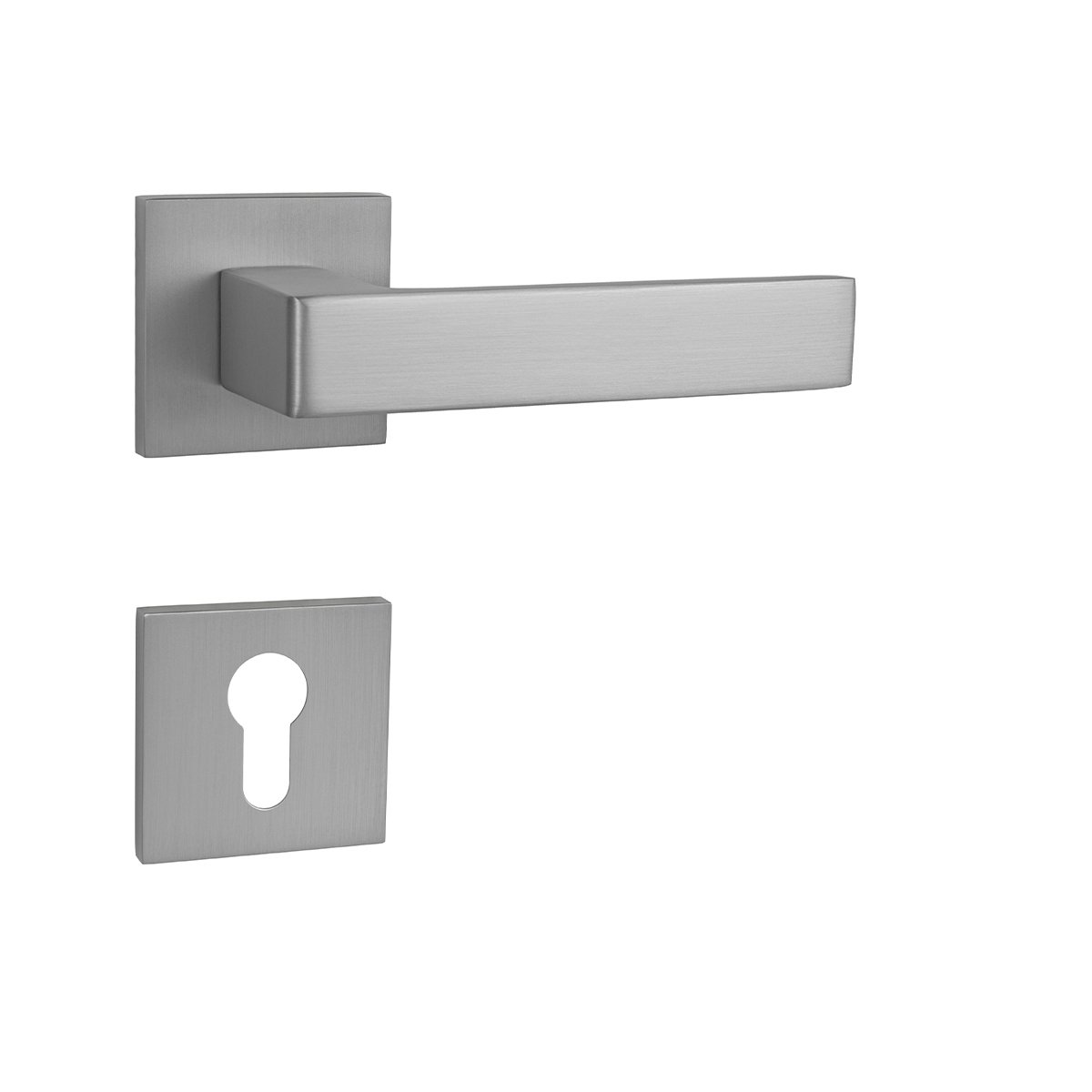 Rozetová klika na interiérové ​​dveře s hranatou rozetou je vyrobena odléváním z kvalitních slitin zinku a hliníku a je povrchově upravena. Klika je povrchově upravována galvanizací a vyznačuje se vysokou odolností proti oděru. Kování je testováno na 100 000 cyklů.