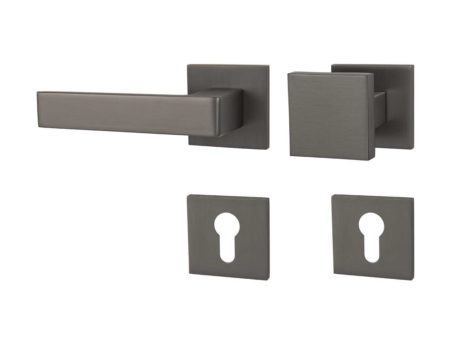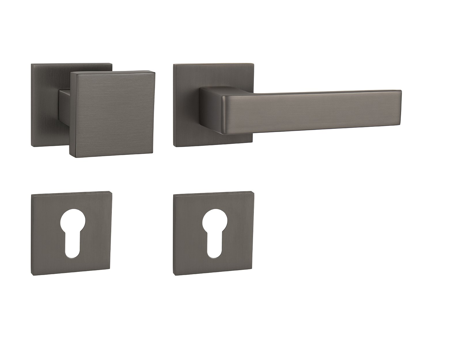 Rozetová klika na interiérové ​​dveře s hranatou rozetou je vyrobena odléváním z kvalitních slitin zinku a hliníku a je povrchově upravena. Klika je povrchově upravována galvanizací a vyznačuje se vysokou odolností proti oděru. Kování je testováno na 100 000 cyklů.
