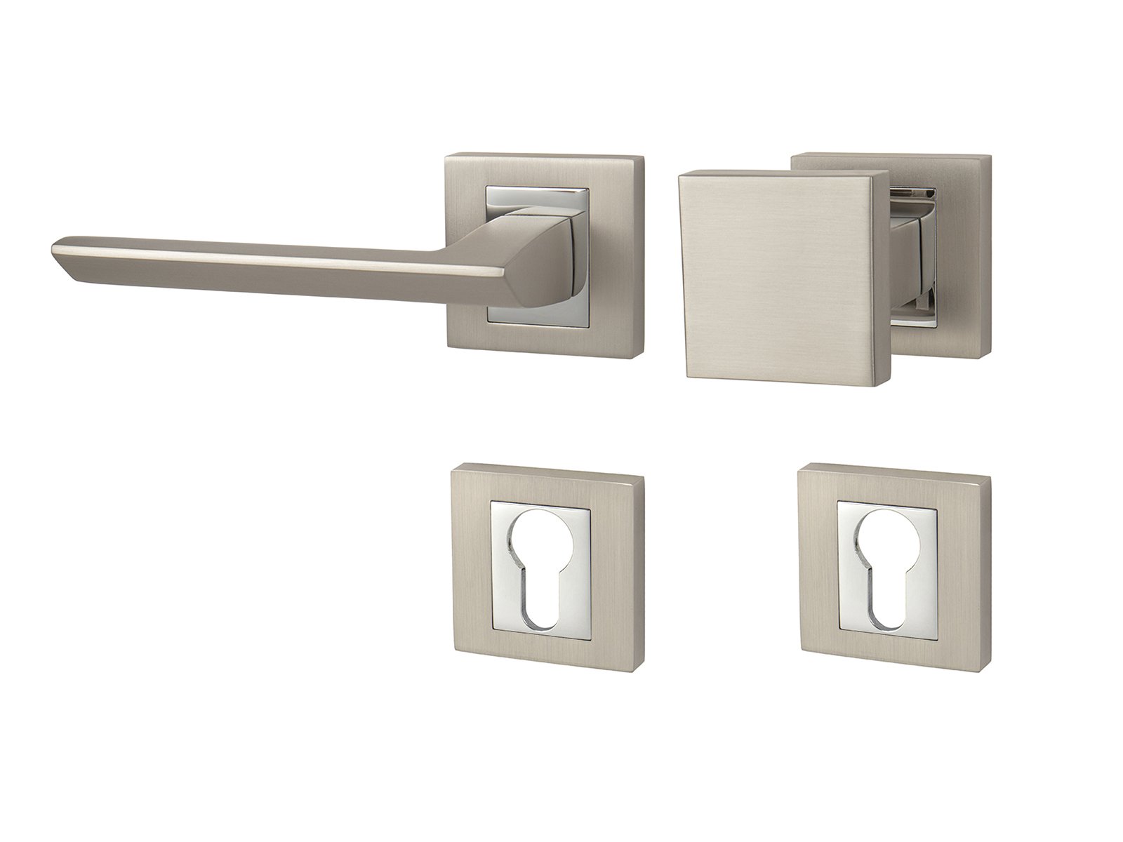 Rozetová klika na interiérové ​​dveře s hranatou rozetou je vyrobena odléváním z kvalitních slitin zinku a hliníku a je povrchově upravena. Rozeta má rozměry 52 mm x 52 mm a tloušťku 10 mm. Klika je povrchově upravována galvanizací a vyznačuje se vysokou odolností proti korozi. Kování je testováno na 100 000 cyklů.