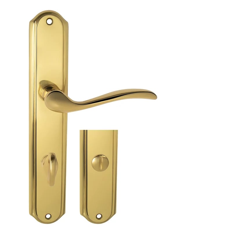 Štítová klika na interiérové dveře s oválným štítem je vyrobená z materiálů vysoké kvality - mosaz a je povrchově upravená.
