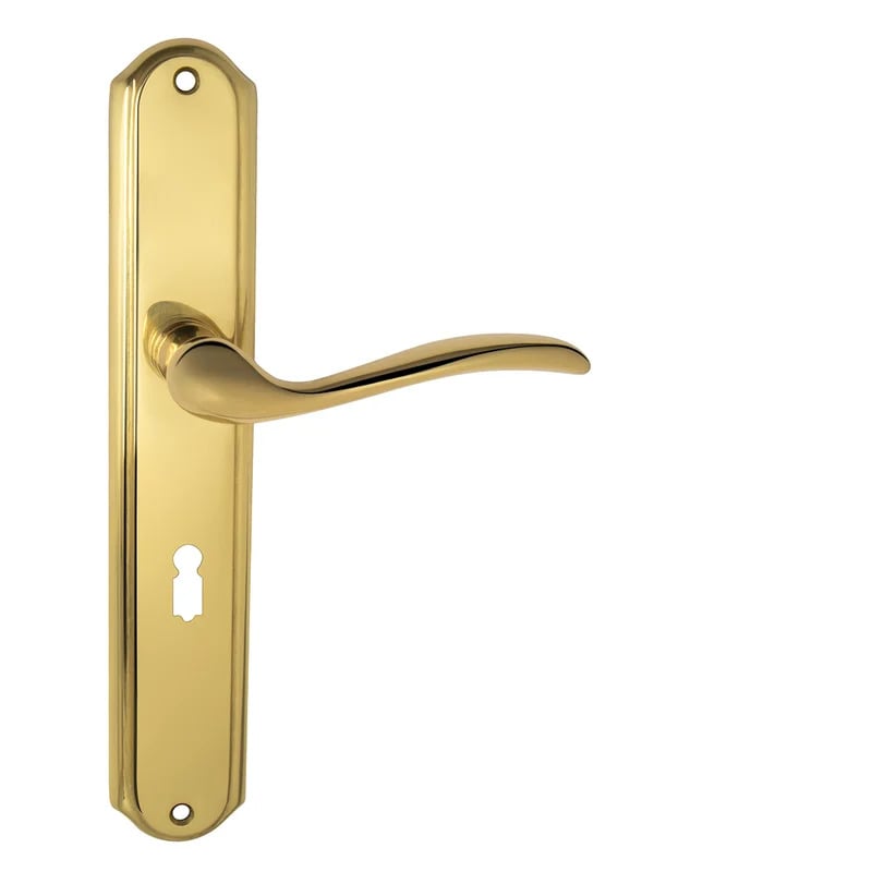 Štítová klika na interiérové dveře s oválným štítem je vyrobená z materiálů vysoké kvality - mosaz a je povrchově upravená.