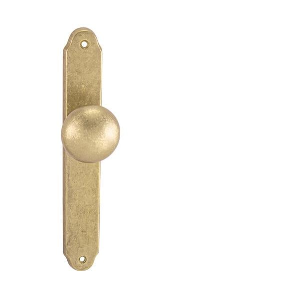 Dveřní pevná přímá koule na rustikálním štítě je vyrobena z materiálů vysoké kvality - zamak a je povrchově upravena. Koule má průměr 51 mm a štít má rozměry 36 mm x 238 mm.