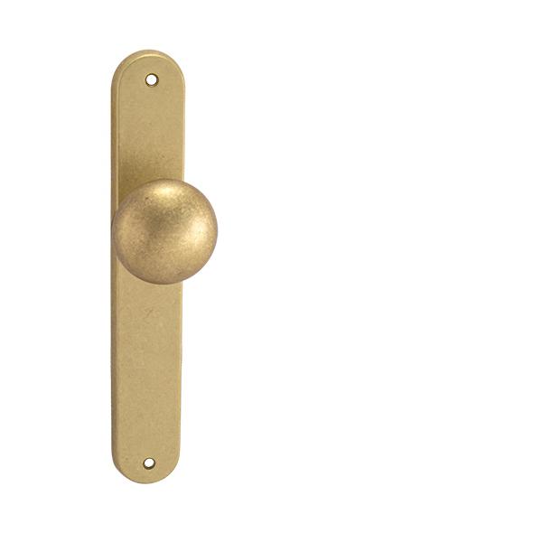 Dveřní pevná přímá koule na oválném štítě je vyrobena z materiálů vysoké kvality - mosaz a je povrchově upravena. Koule má průměr 51 mm a štít má rozměry 40 mm x 232 mm.