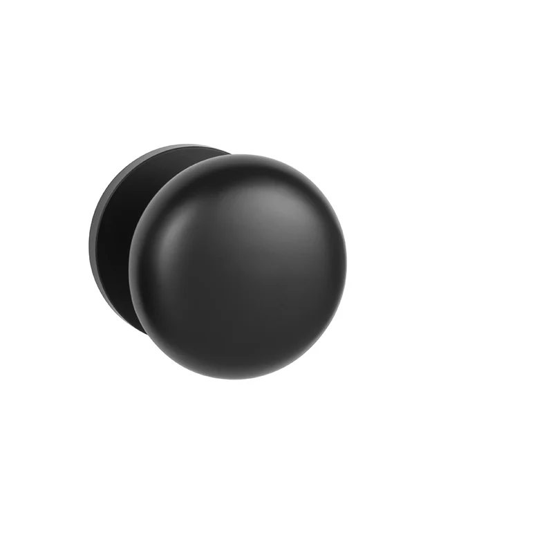 Dveřní pevná přímá koule na kulaté rozetě je vyrobená ze zamaku - slitiny zinku a hliníku a je povrchově upravená.