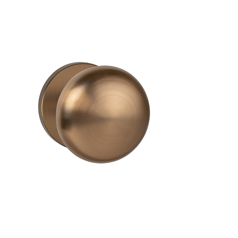 Dveřní pevná přímá koule na kulaté rozetě je vyrobená ze zamaku - slitiny zinku a hliníku a je povrchově upravená.