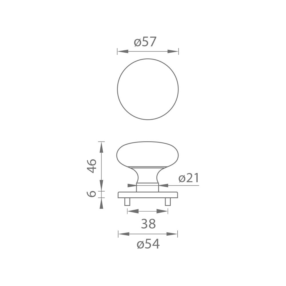 Dveřní pevná přímá koule na kulaté rozetě je vyrobená ze zamaku - slitiny zinku a hliníku a je povrchově upravená.