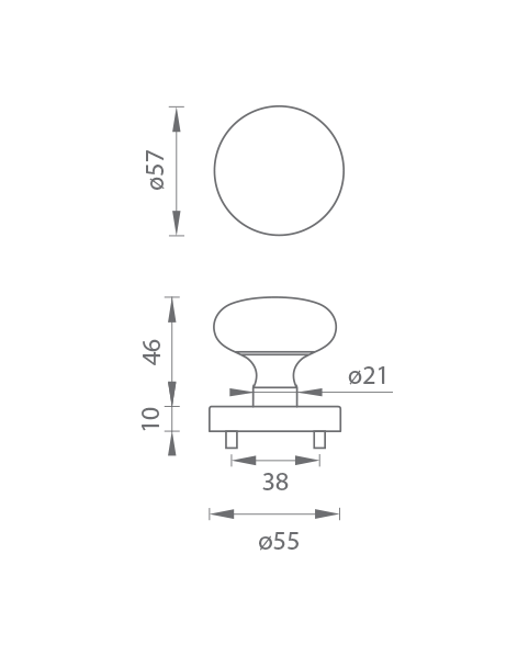 Dveřní pevná přímá koule na kulaté rozetě je vyrobena z materiálů vysoké kvality - mosaz a z hliníku a je povrchově upravena. Koule má průměr 57 mm a kulatá rozeta má průměr 55 mm a tloušťku 10 mm.