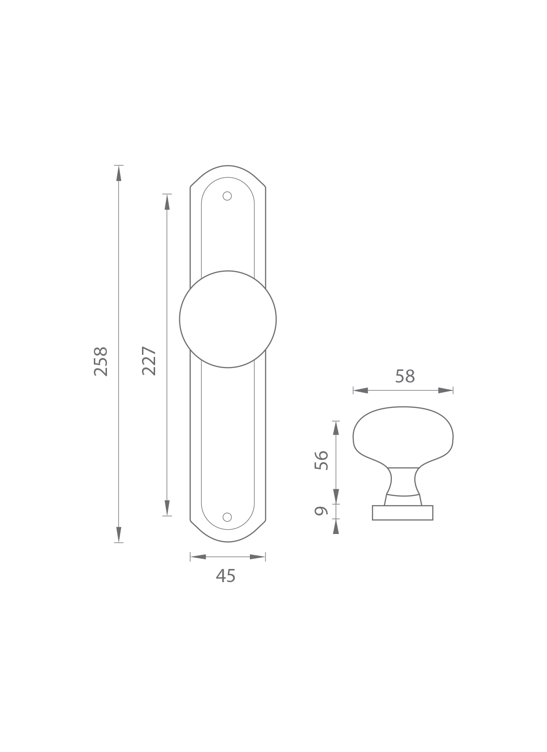Koule má průměr 58 mm a štít má rozměry 45 mm x 258 mm.