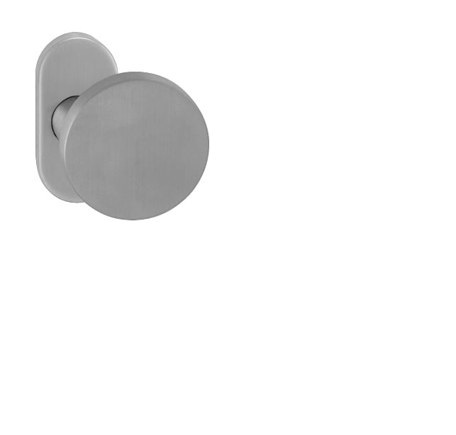 Dveřní vyosená pevná plochá koule na úzké oválné rozetě je vyrobená z vysoce kvalitní nerezavějící oceli, známé jako nerez a je povrchově upravená.