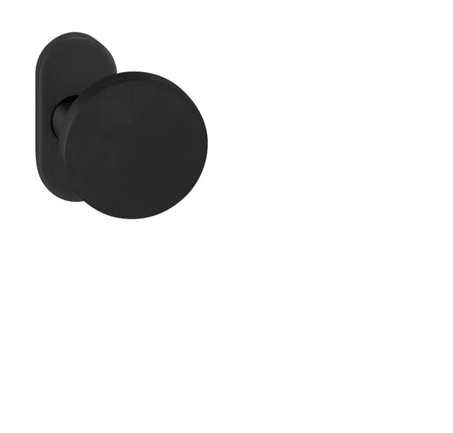 Dveřní vyosená pevná plochá koule na úzké oválné rozetě je vyrobená z vysoce kvalitní nerezavějící oceli, známé jako nerez a je povrchově upravená.